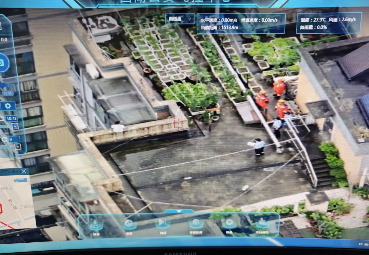 6 月 15 日,三墩轄區某小區有人跳樓,特警駐情指聯勤崗迅速通過云安平臺將警情推送至飛控中心,操控三墩檢查站無人機前往現場查勘,最終成功勸導相關人員安全下樓。